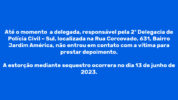 A vítima e o comunicante compareceram à 2ª Delegacia da Polícia Civil de Minas Gerais – Sul, situada na Rua Corcovado, nº 631, bairro Jardim América, onde houve tentativa de entrega do material coletado. Contudo, a policial civil responsável no momento orientou que os arquivos somente poderiam ser apresentados no momento do depoimento oficial da vítima.