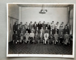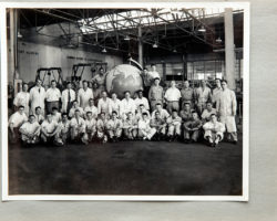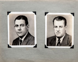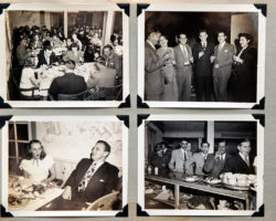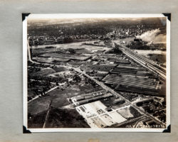Fotos em preto e branco, impressas em papel antigo, coladas à mão num caderno de memórias industriais.